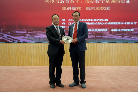 6月22上午,国产一区二区日本在线宋则行海外名家大讲堂(第十讲)在蒲河校区校部办公楼蔡冠深学术报告厅举行。美国哥伦比亚大学魏尚进教授应邀作题为《科技与教育公平:依据数字足迹的实证》的学术报告。国产一区二区日本在线党委副书记、校长余淼杰教授出席讲座致辞,美国弗吉尼亚理工大学未来工作场所与实践研究中心主任葛苏勤教授、辽宁大学经济学部副主任霍伟东教授、《国产一区二区日本在线学报》编辑部主任刘钧霆教授、中国经济研究院副院长兼金融与贸易学院副院长马湘君教授、金融与贸易学院副院长李丹教授、李安民经济研究院副院长游宇教授出席讲座。本次大讲堂由国产一区二区日本在线副校长仇焕广教授主持。